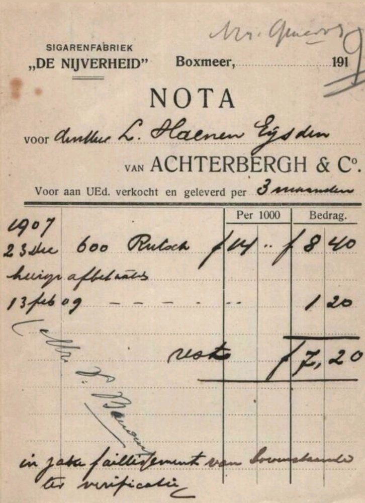 Achterbergh van en Co Sigarenfabriek De Nijverheid - Boxmeer anno 1919 MP
