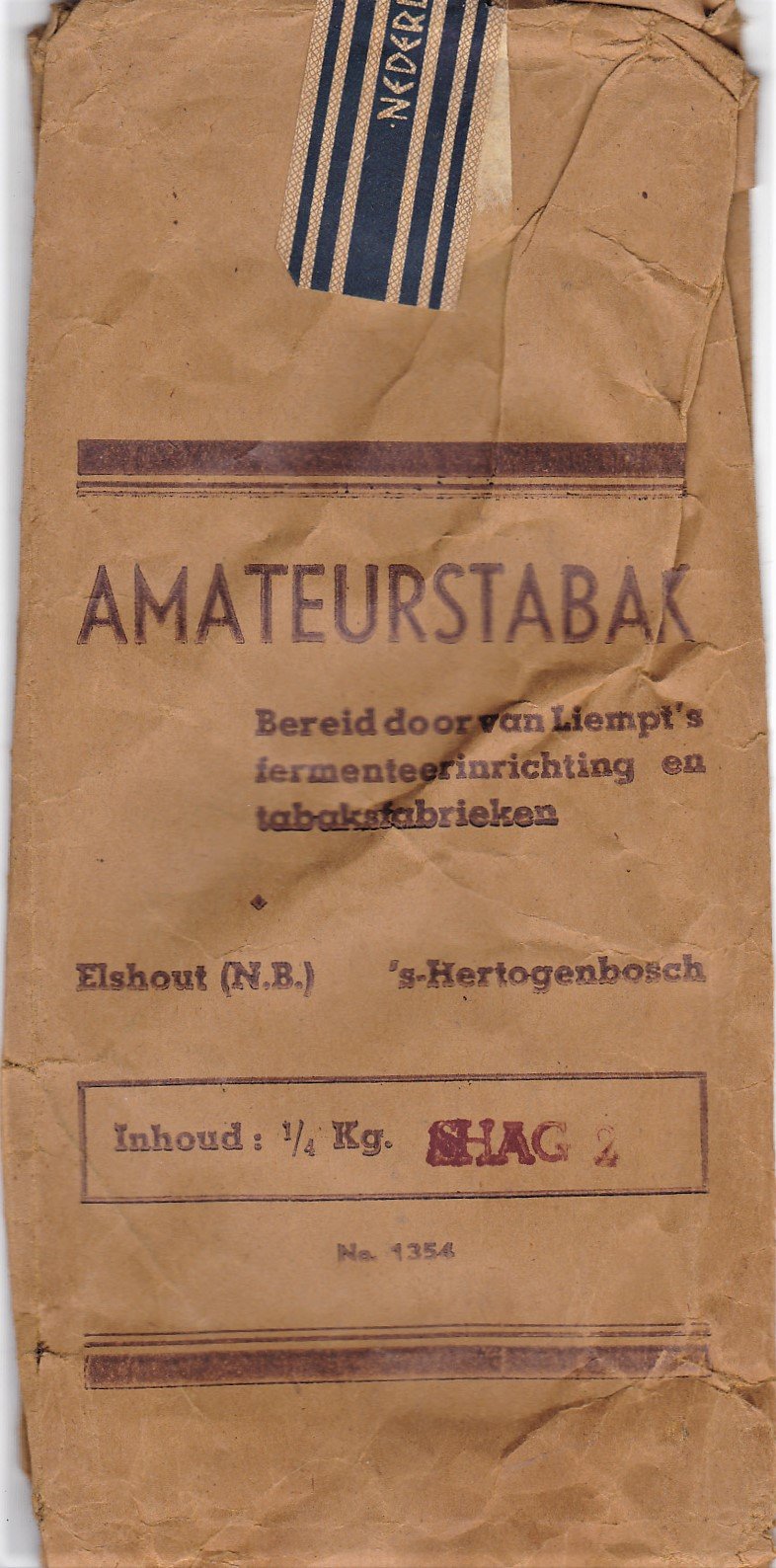 Liempt - sHertogenbosch - Elshout AMATEURS TABAK - SHAG 2 250 gr prijs f1,50 banderol 1354 M