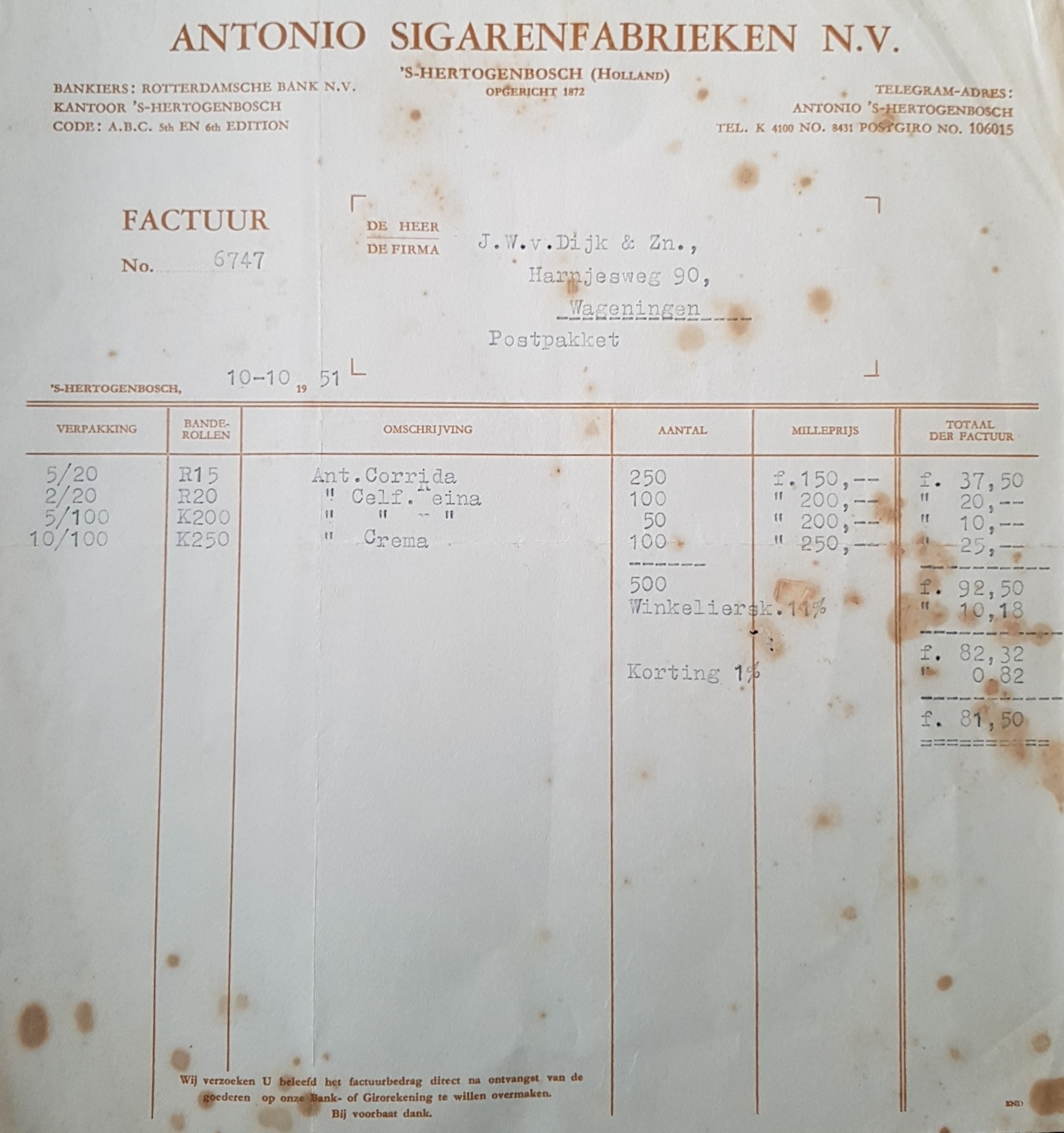 Antonio Sigarenfabrieken - 's-Hertogenbosch 10 okt 1951 M