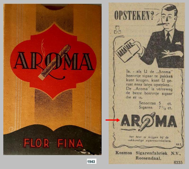 Kosmos Sigarenfabriek N.V - Roosendaal AROMA  surrogaat sigaren prijs 50ct  M