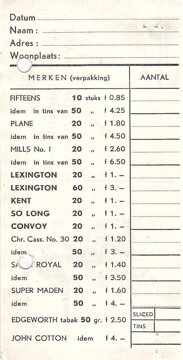 Blok Cigarettes Import Company vh A.J. - Scheveningen BESTELKAART M
