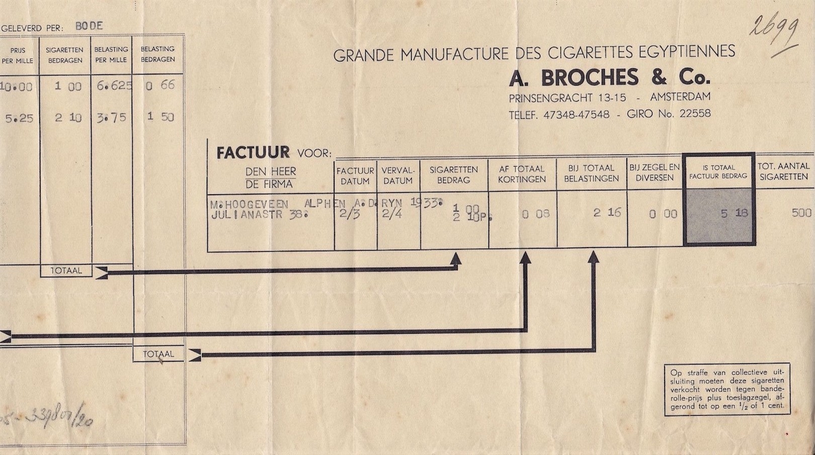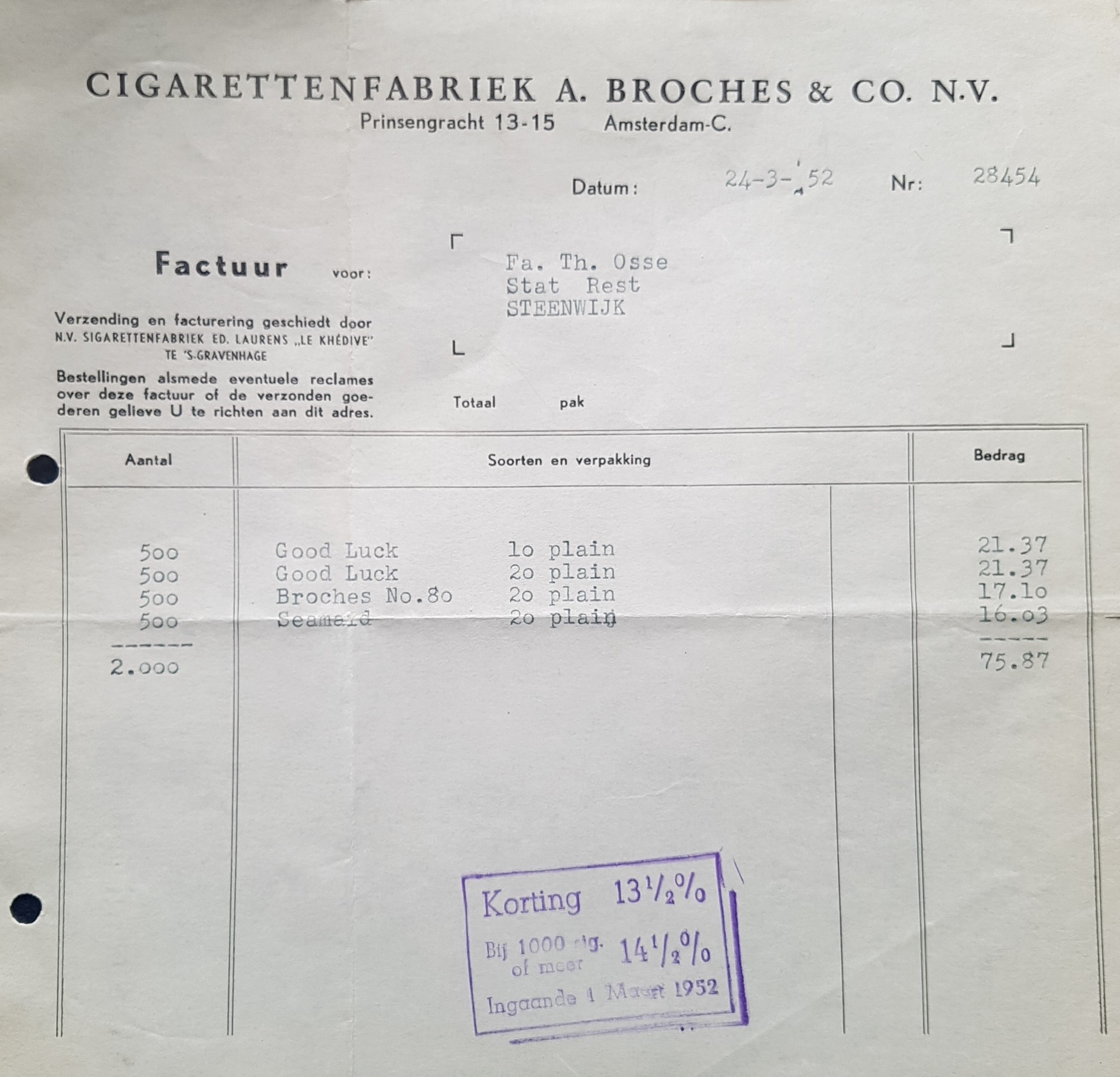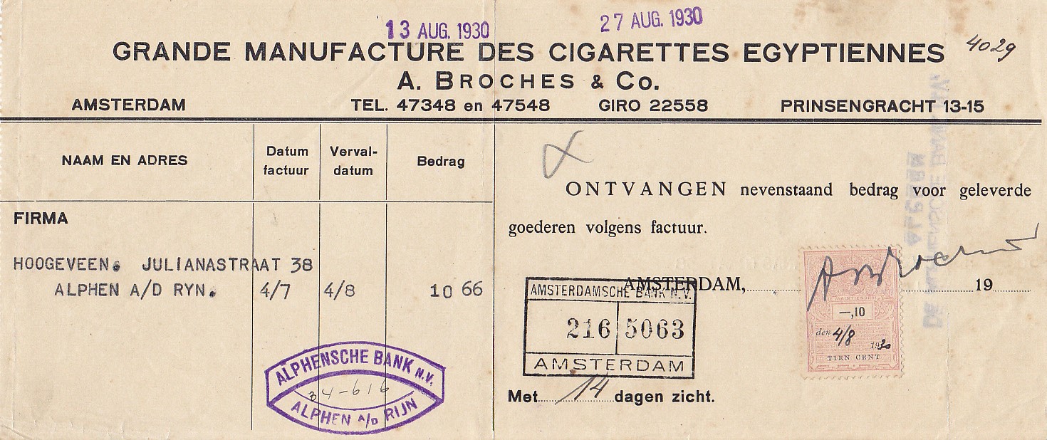 Broches - Co. A Amsterdam KWITANTIE 04-08-1930
