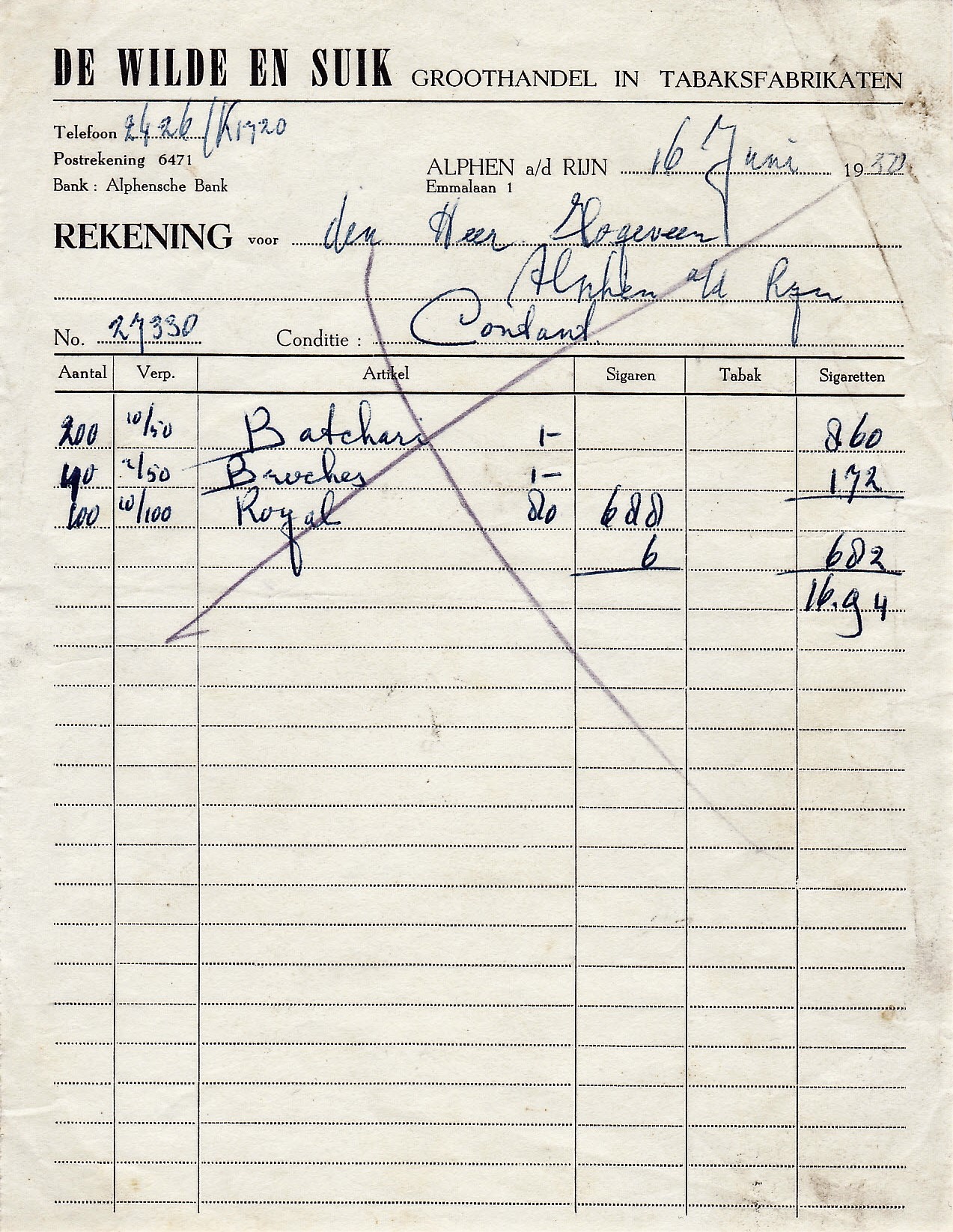 de Wilde en Suik  groothandel - Alphen aan de Rijn NOTA anno 1950  M