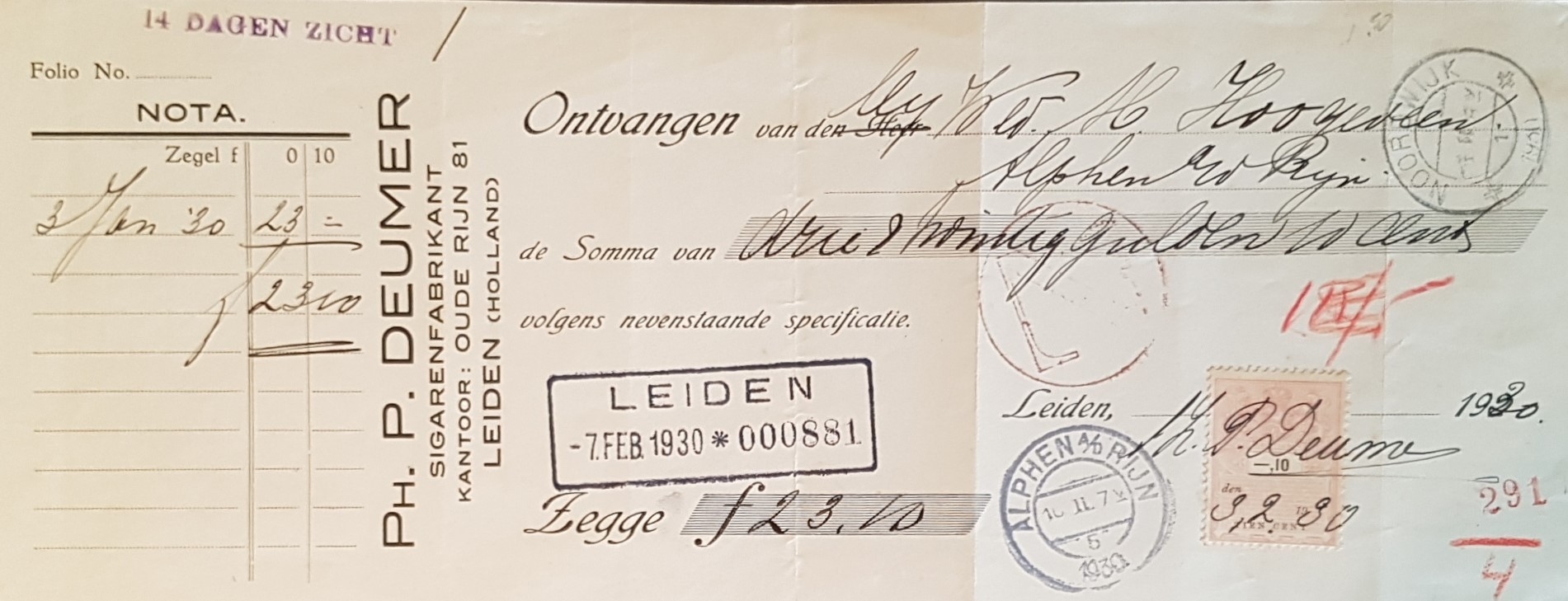 Deumer Ph.P - Sigarenfabrikant - Leiden M