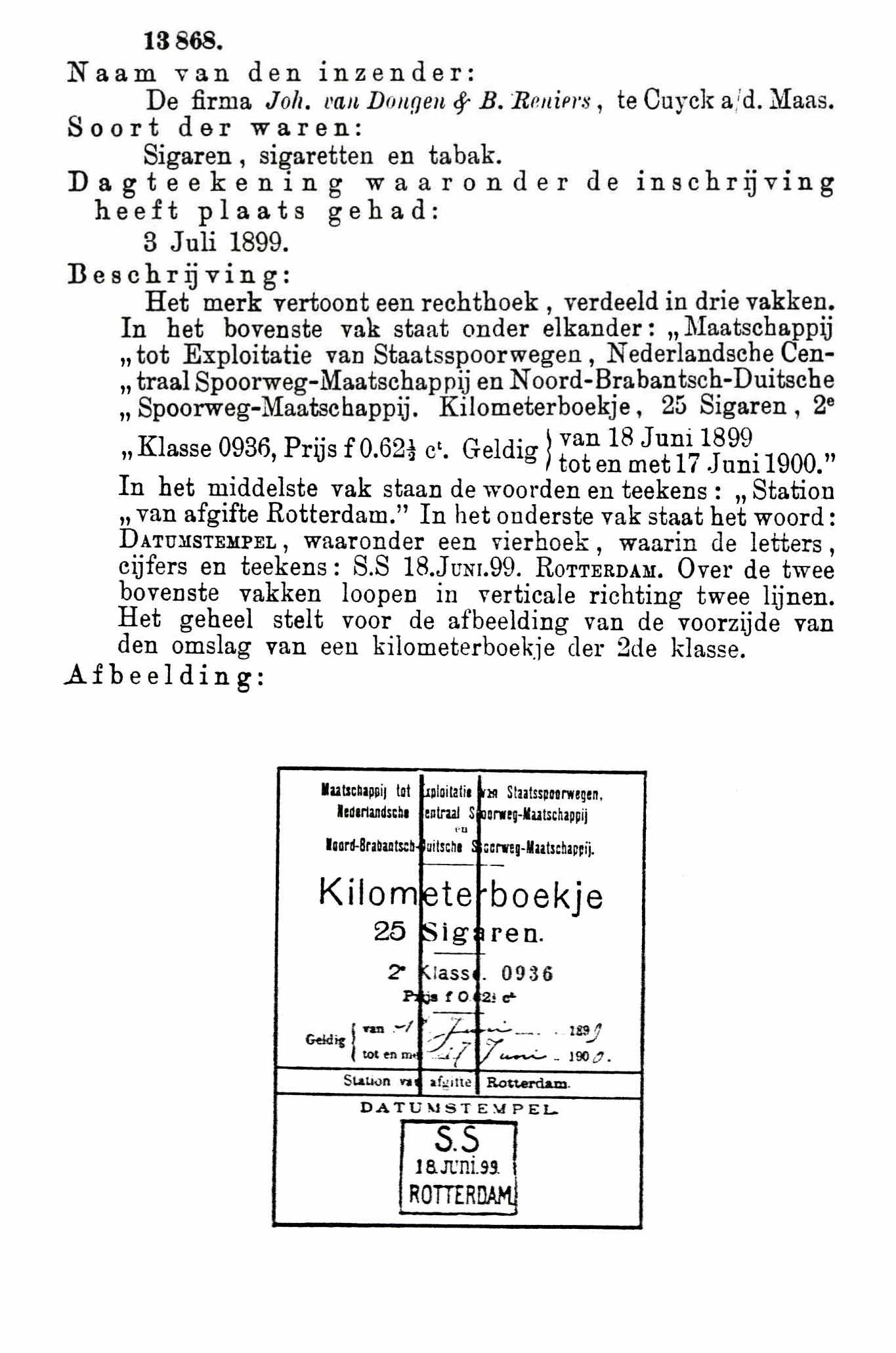 Dongen Joh. van en Reniers B. - Cuyck a d Maas KILOMETER BOEKJE blik 25 sigaren MP