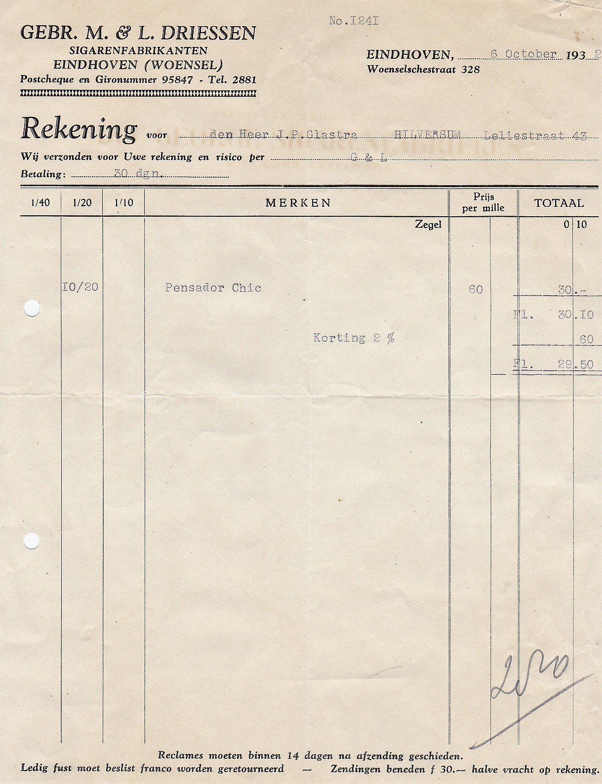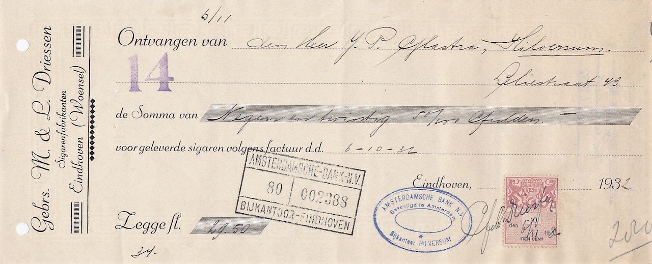 Driessen Gebr. M. en L., Sigaren fabrikanten, Eindhoven Woensel, anno 6-october-1932 M