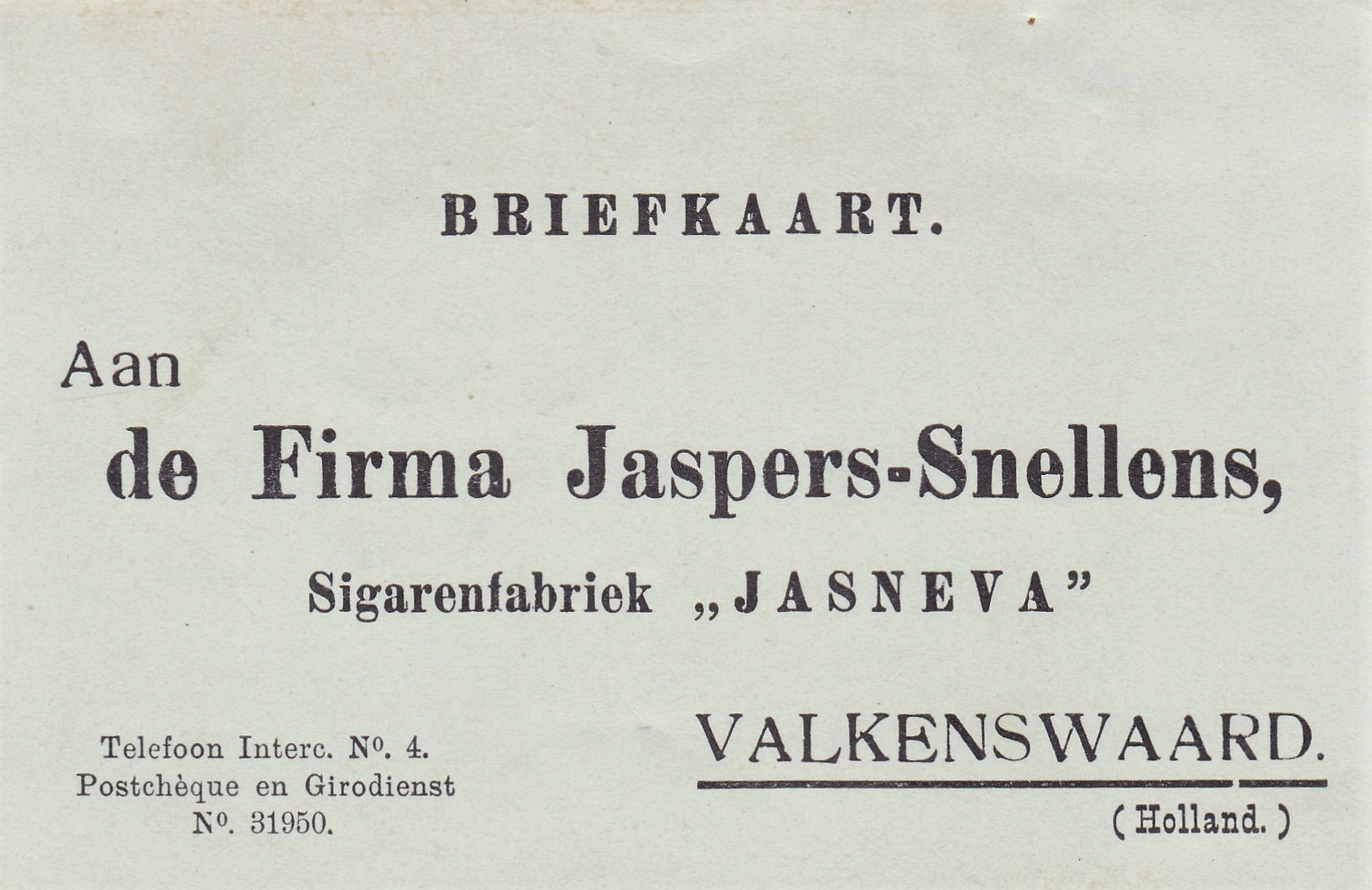 Jasneva Sigarenfabriek - Valkenswaard BRIEFKAART M