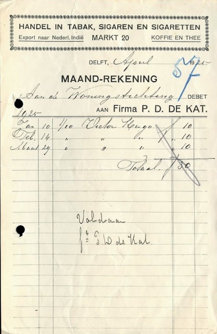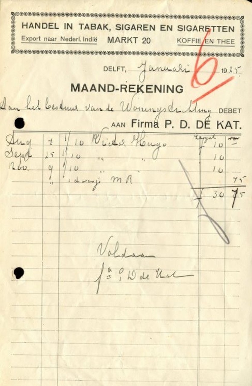 Kat P.D. de Handel in Tabak Sigaren en Sigaretten - Delft anno januari-1925 L