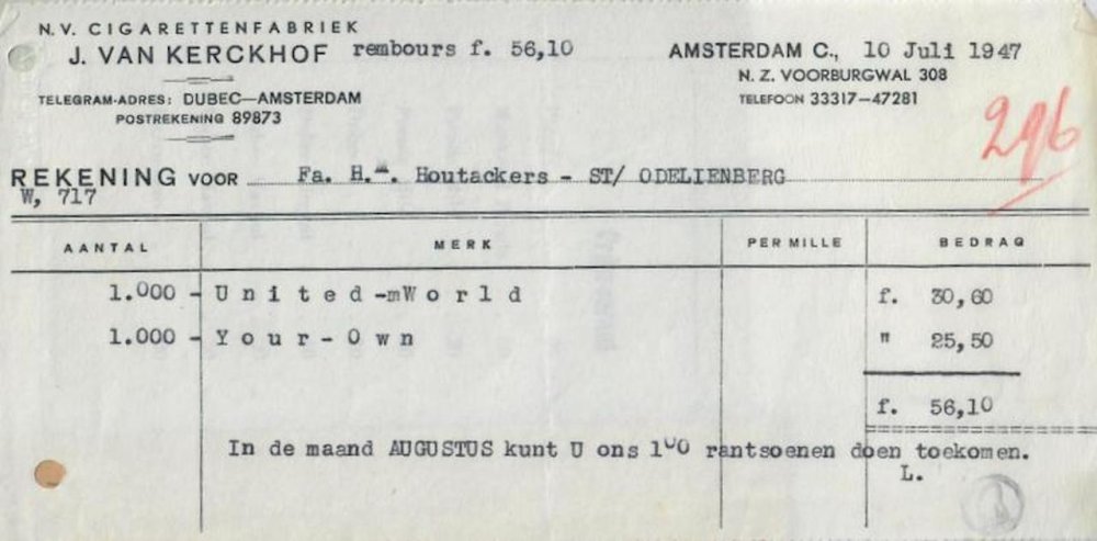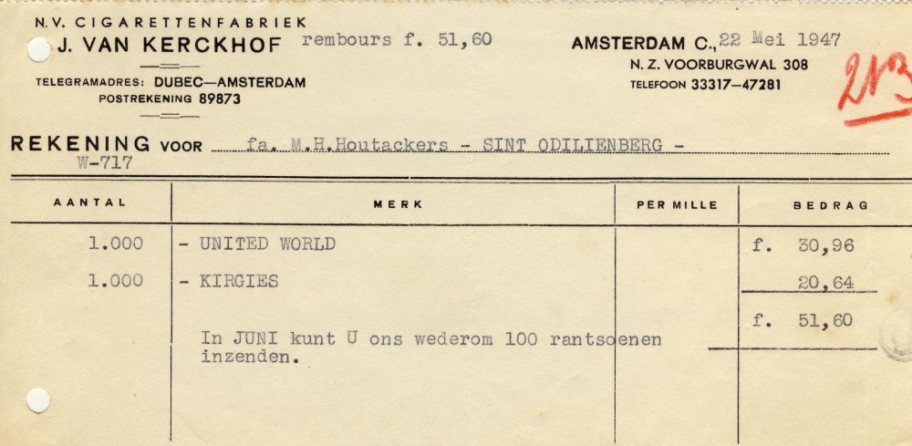 Kerckhof, J. van Sigarettenfabriek N.V. – Amsterdam 12 Jan 1953 M