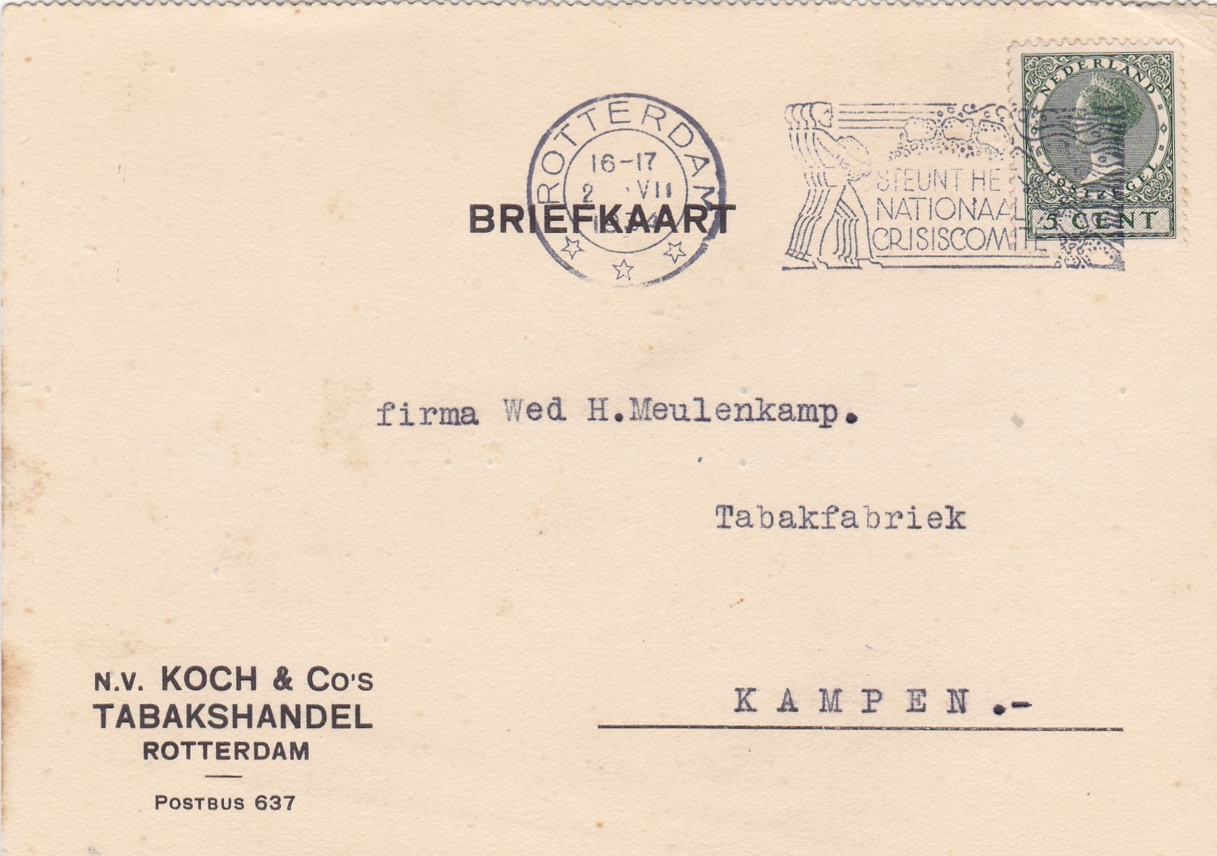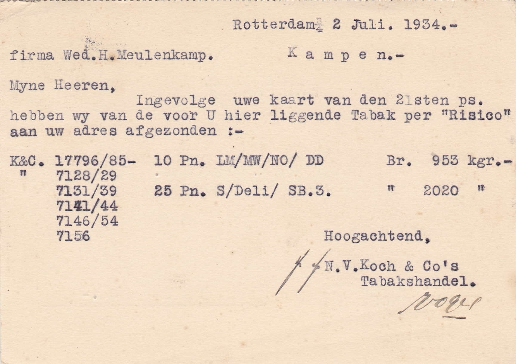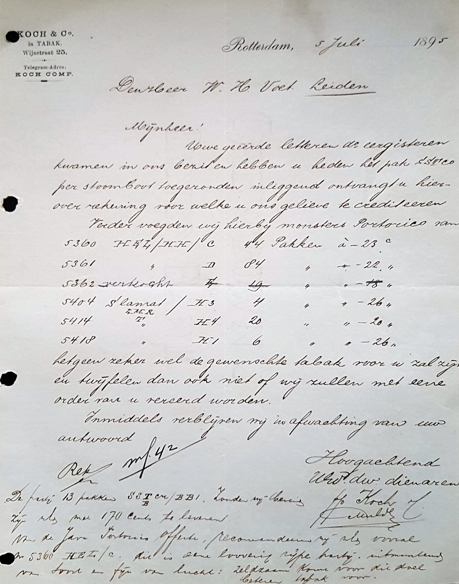 KOCH en Co in Tabak - Rotterdam 5 Jul 1895 M