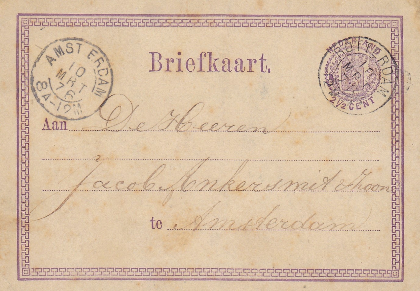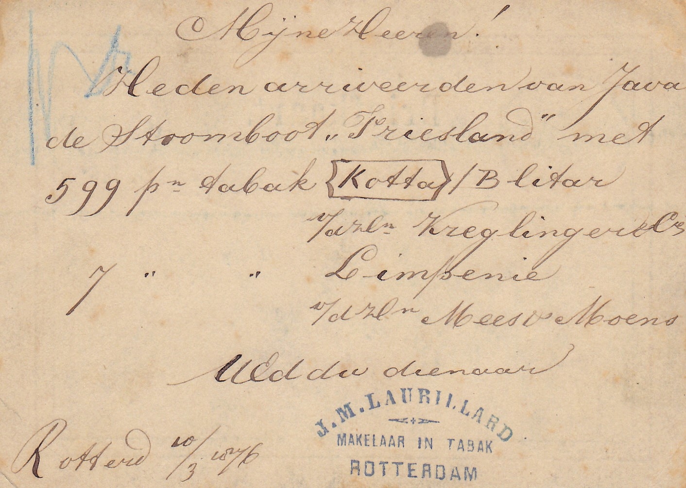 Laurillard J.M. makelaar in Tabak - Rotterdam anno 1876 BRIEFKAART M
