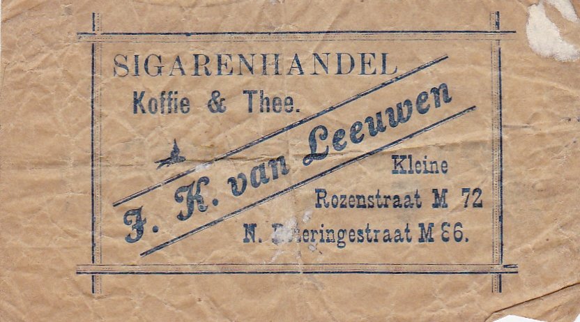 Leeuwen J.K. Sigarenhandel, Koffie en Thee Plaats onbekend SIGARENZAKJE M