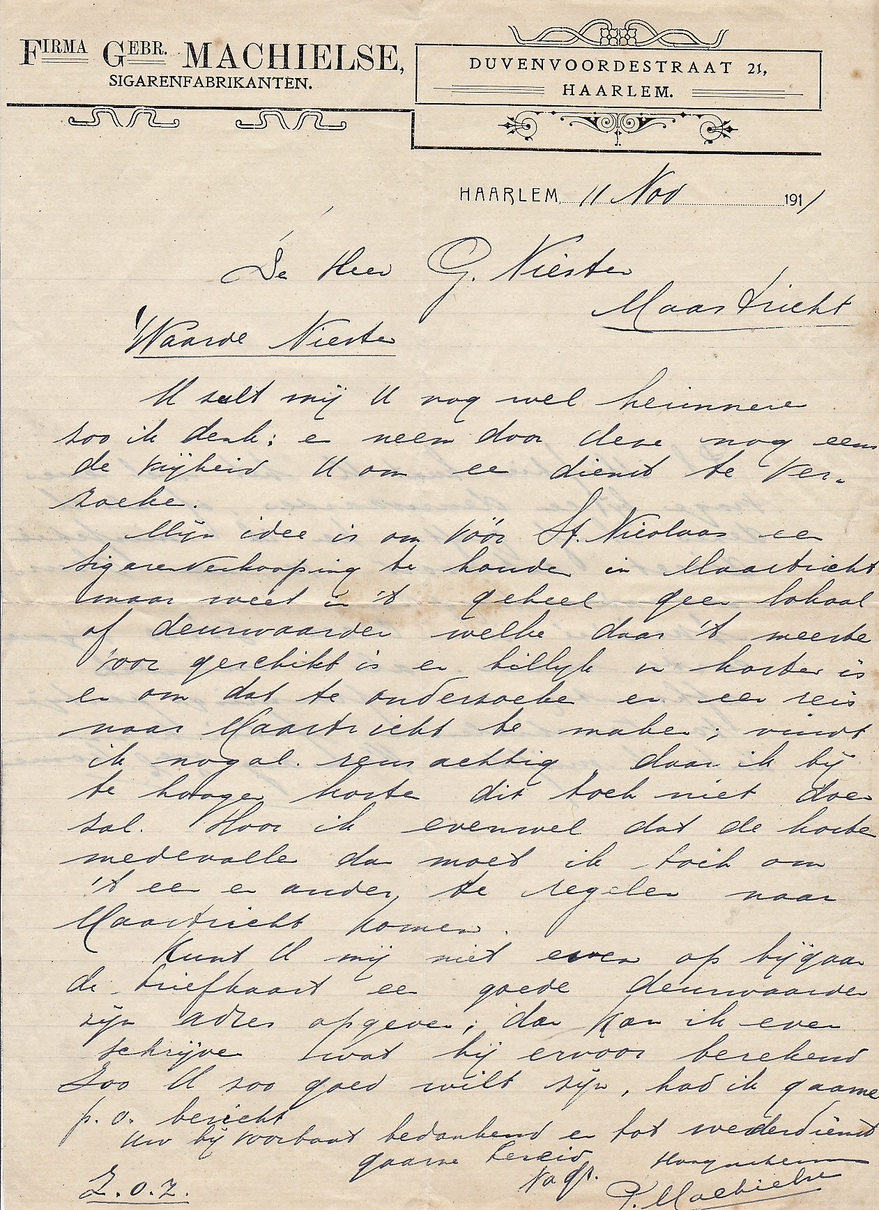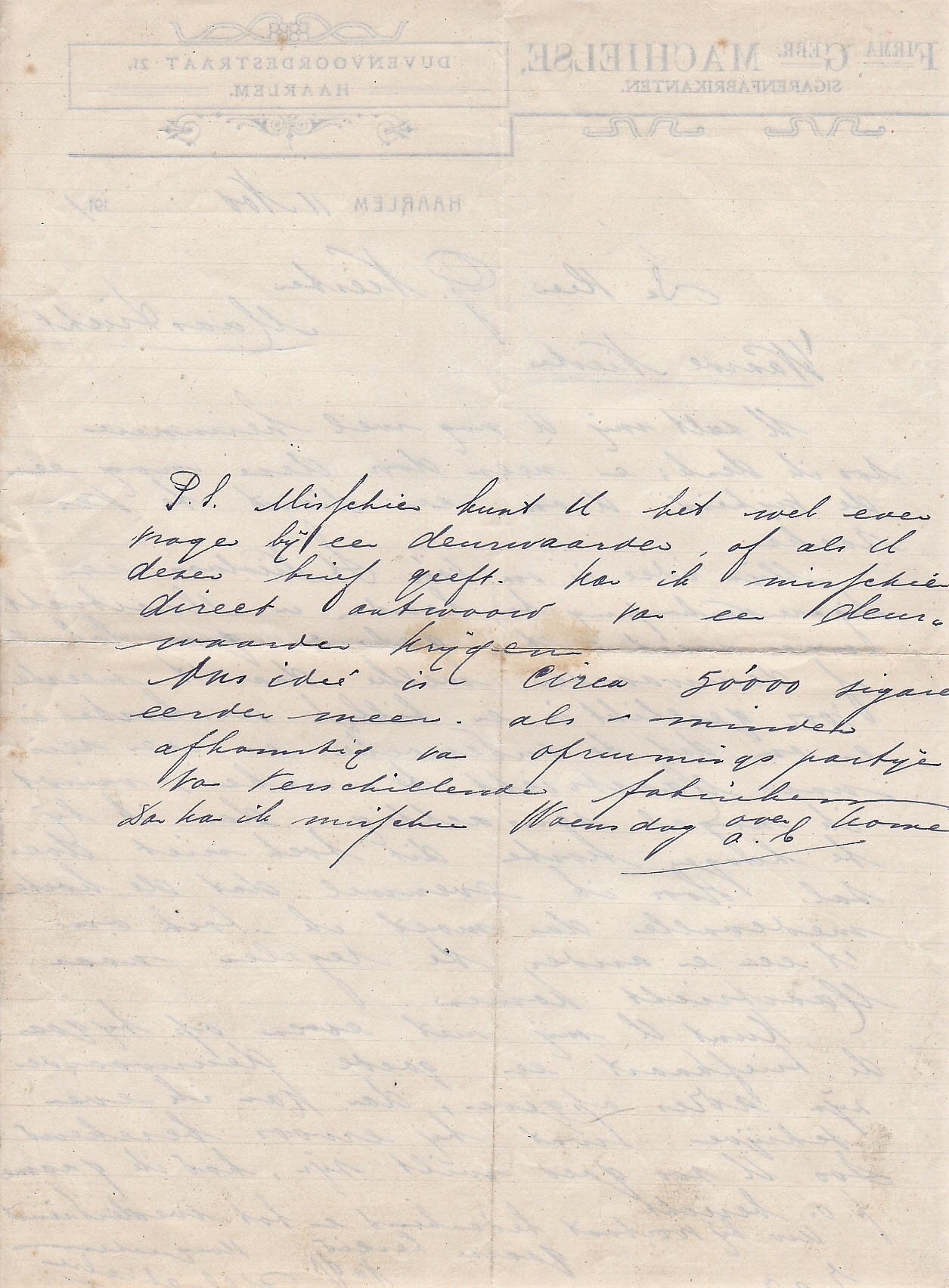 Machielse Gebr. Fa Sigaren fabrikanten - Haarlem anno 1911 BRIEF M