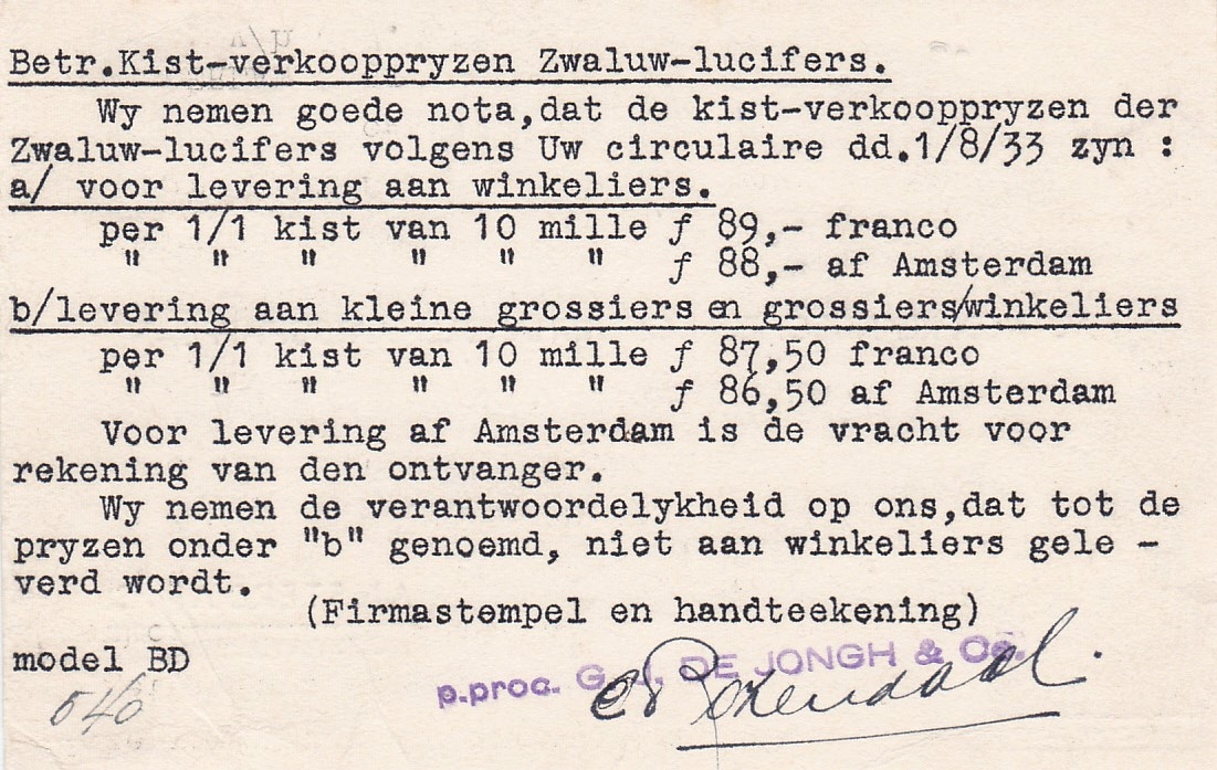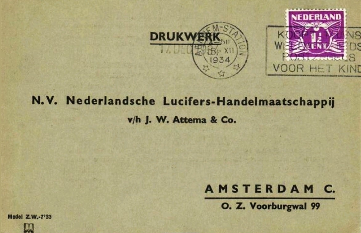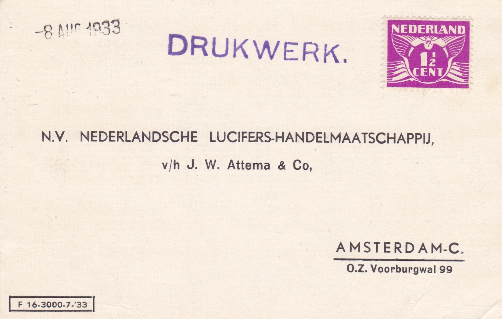 Nederlandsche Lucifers Handelmaatchappij N.V. - Amsterdam anno 8-aug-1933 BRIEFKAART M