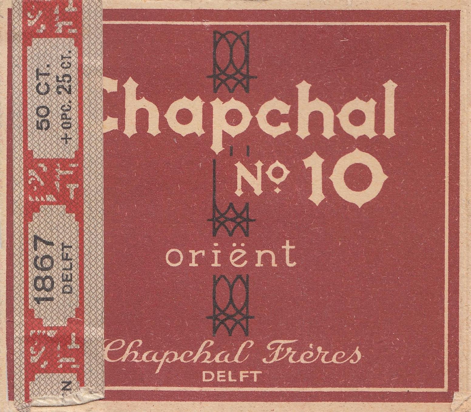 Chapchal Frères Sigaretten- en Tabaksfabriek N.V. - Delft No 10 - 20 sigaretten 50 ct + opc 25 ct banderol 1867 F