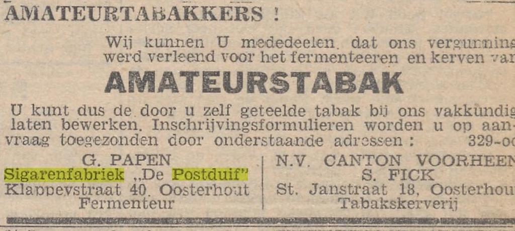 Papen G. - Oosterhout POSTDUIF doos 10 sigaren banderol 2259 M