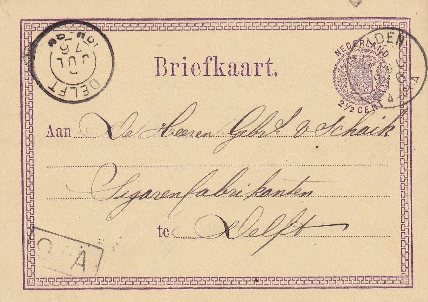 Schaik Gebrs v Sigaren fabrikanten - Delft anno 1876 BRIEFKAART M