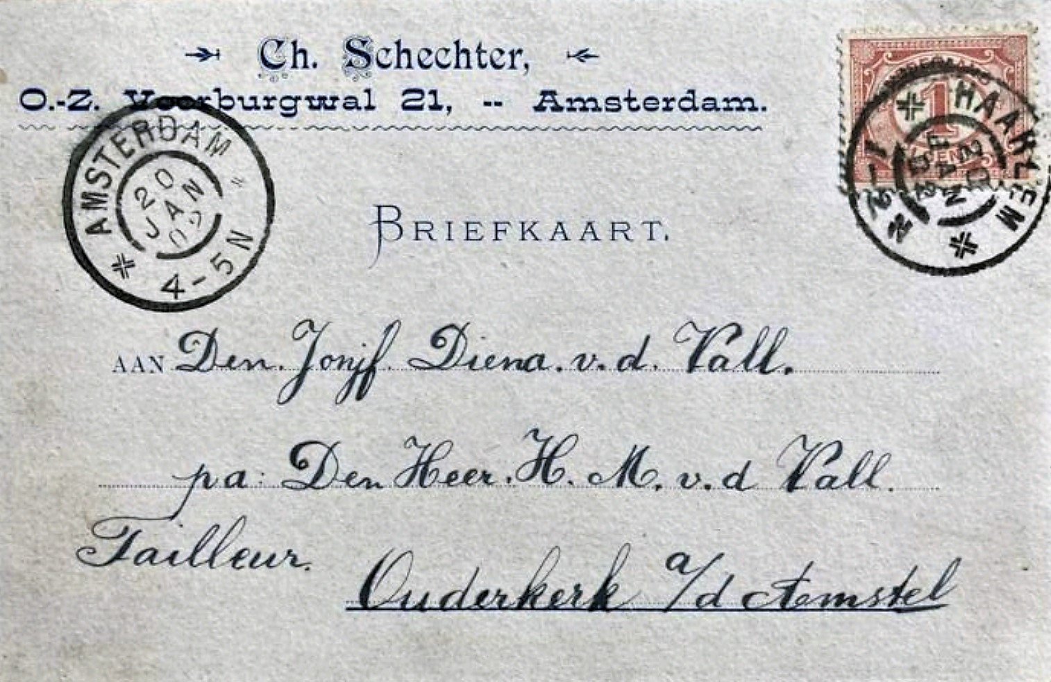 Schechter Ch. Sigaren en Cigarettenfabriek .PORTO. - Amsterdam anno 1902 BRIEFKAART MP