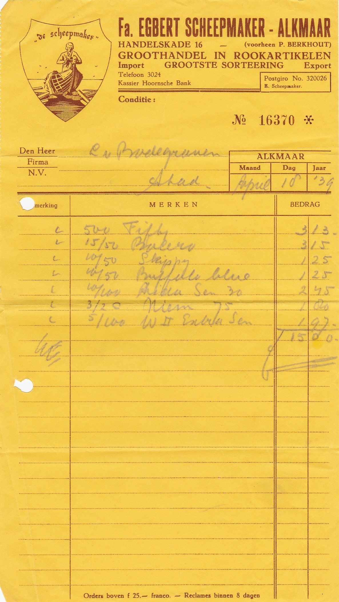 Scheepmaker Egbert Fa. Groothandel - Alkmaar anno 1939 M