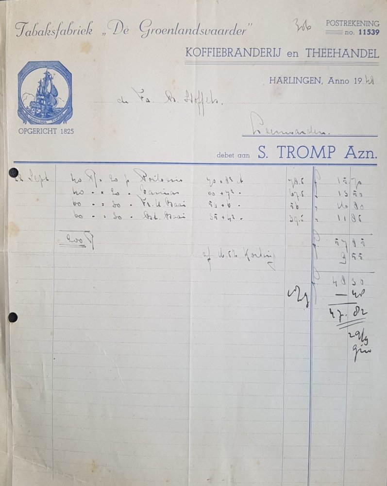 Tromp S. Azn Tabaksfabriek De Groenlandsvaarder - Harlingen 29 Sep 1948 M