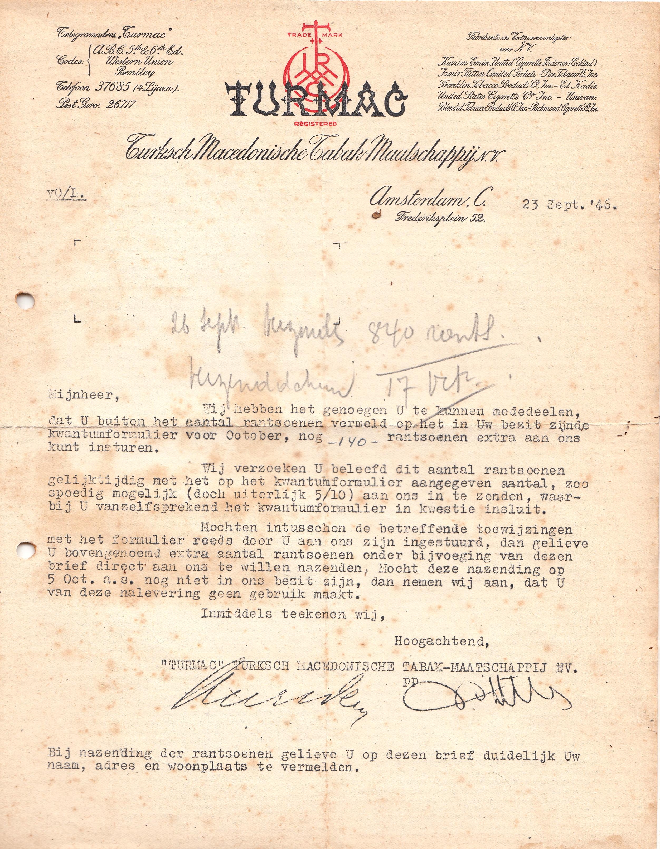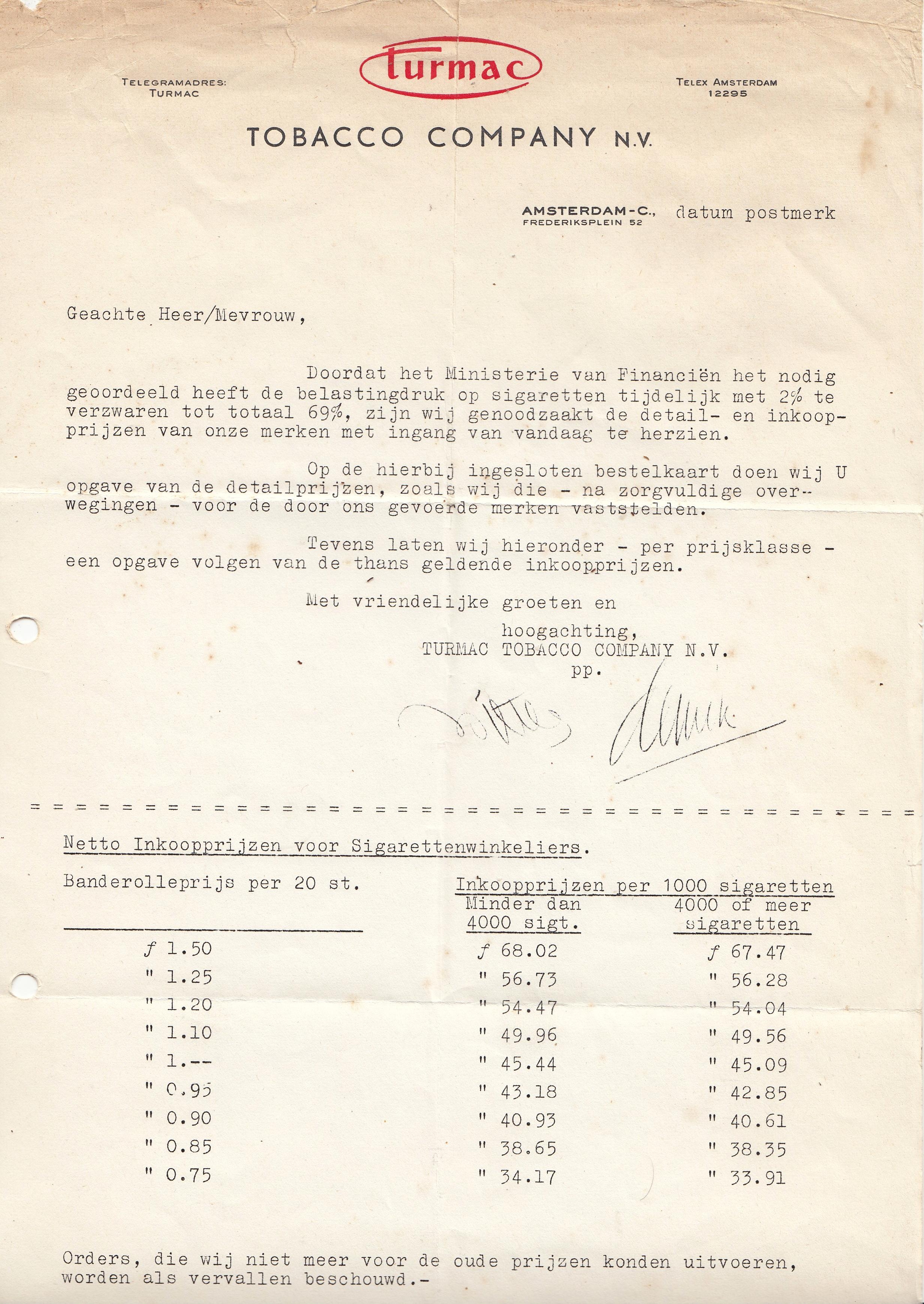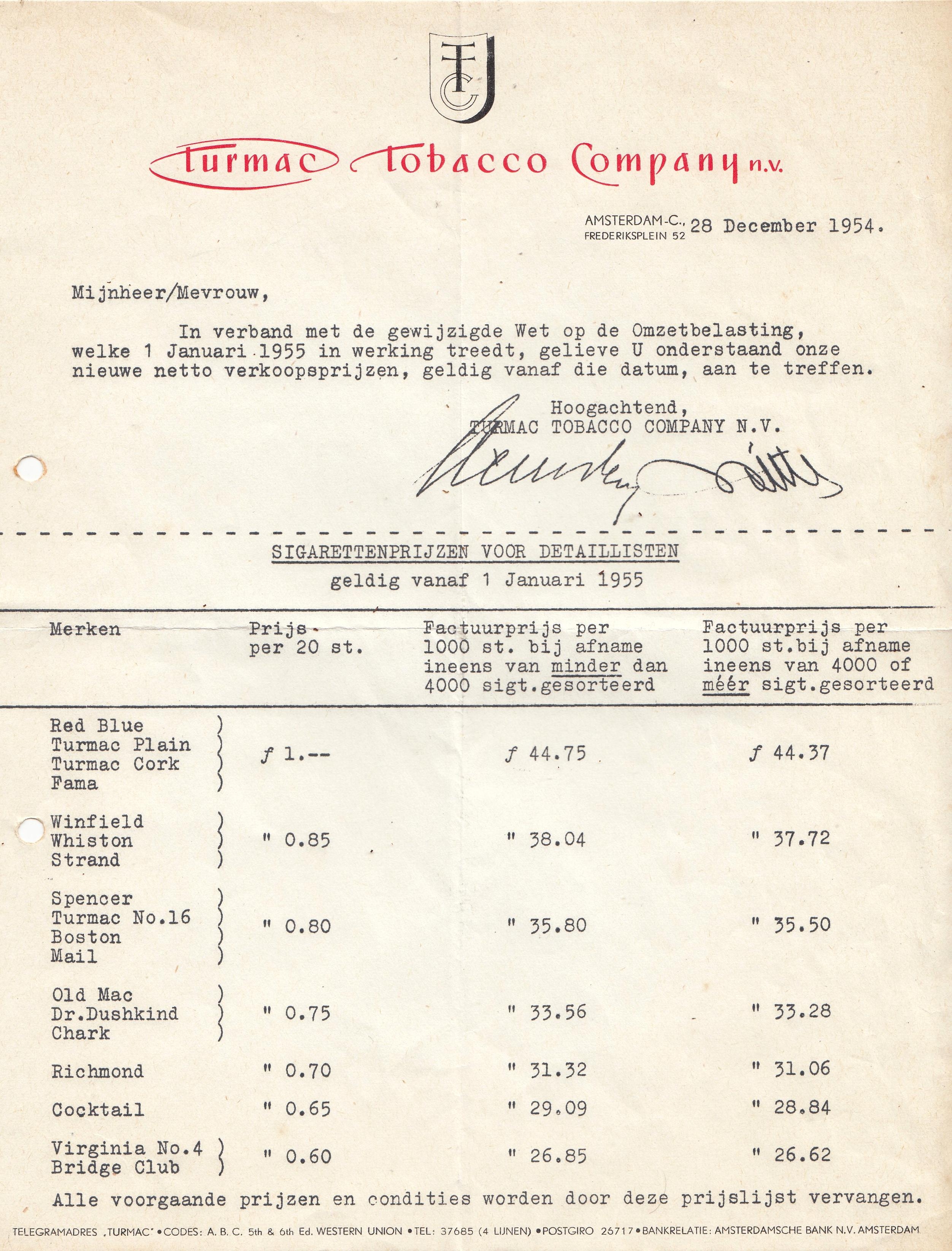 Turmac factuur 1954
