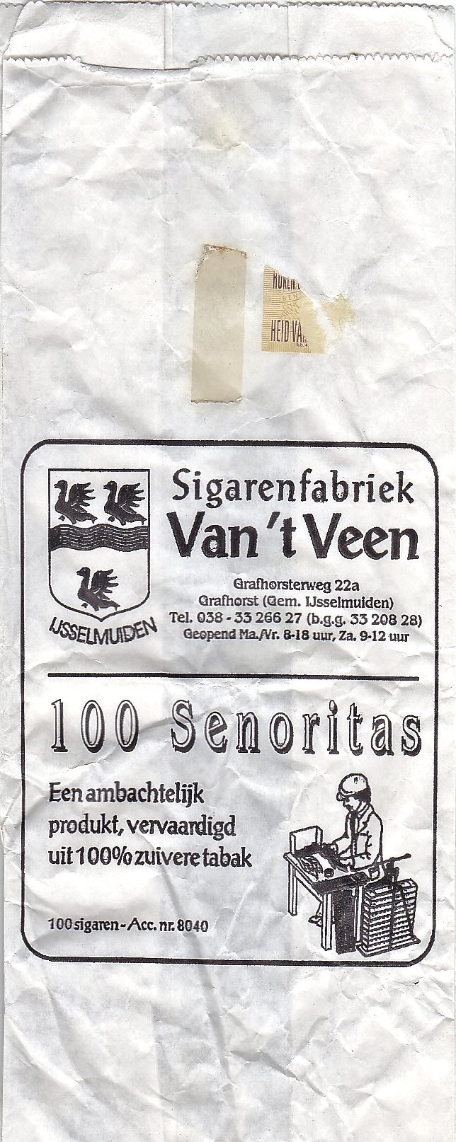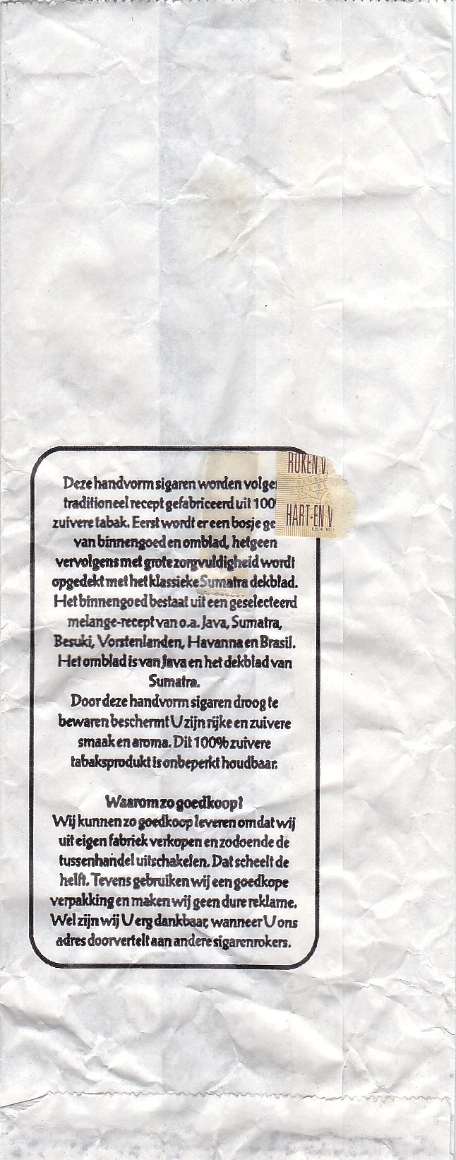 Van t Veen HALF CORONA S zak 50 sigaren prijs f14,50 banderol 1840 M
