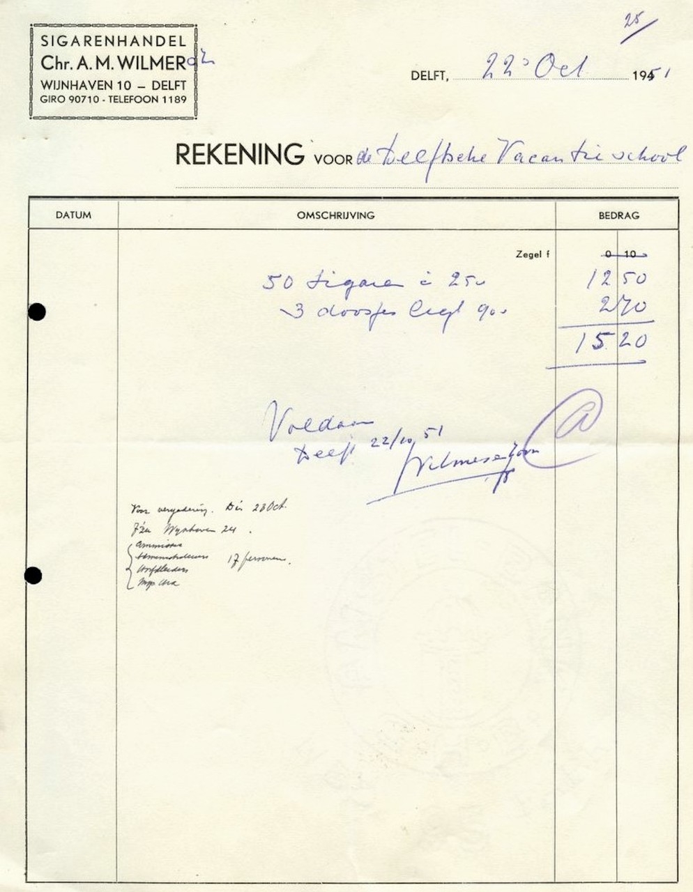 Wilmer en Zn. Sigarenhandel - Delft anno 22-okt-1951 L